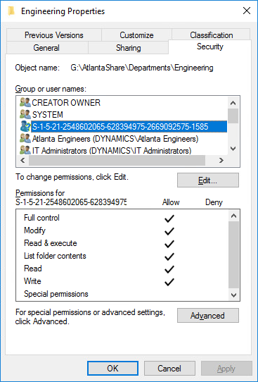 Refer to the unresolved SID listed on the Security tab of the Properties dialog box.