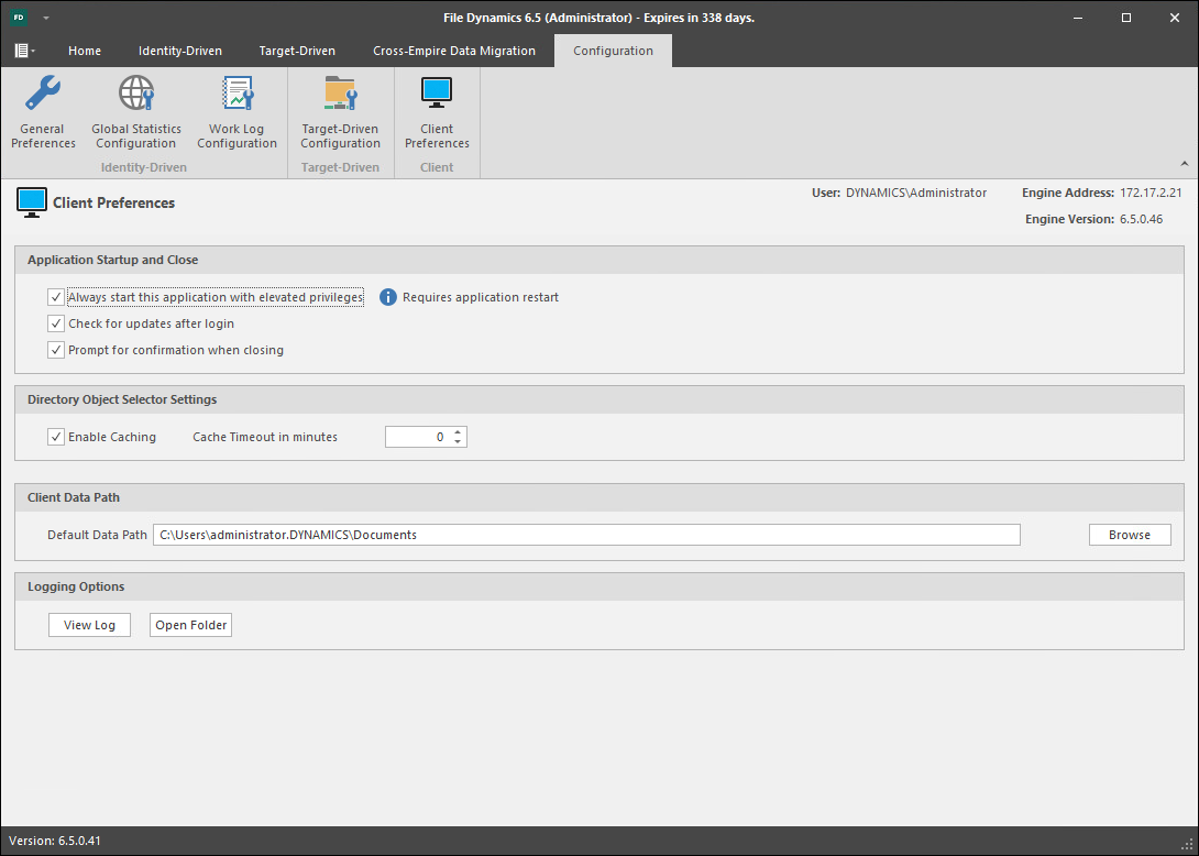 Use this page to set preferences specific to the File Dynamics Admin Client.