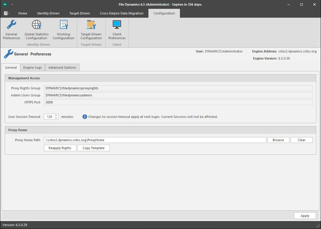 Proxy Rights Group: Displays the Proxy Rights Group that you established when you installed File Dynamics.