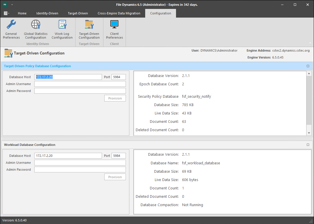 Use this page to establish the CouchDB database settings for all security-based Target-Driven policies, as well as for Workload policies.