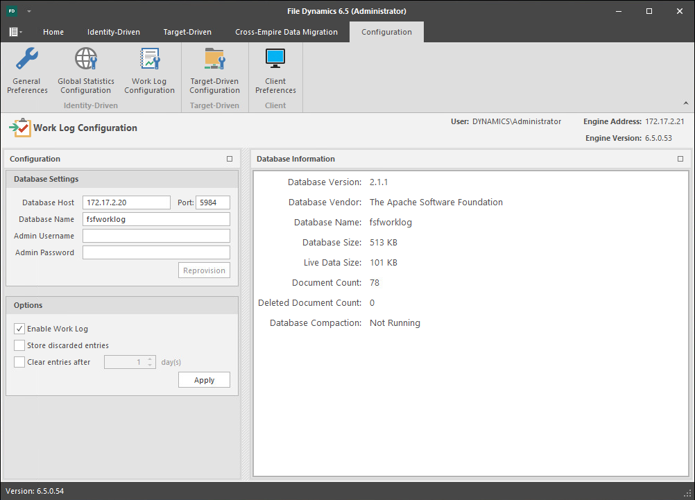 Database Name: The established name for the CouchDB database instance for the Work Log.