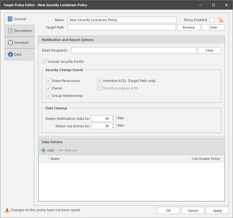 Data Owners assigned for a Security Lockdown policy will be enabled to view changes in access permissions in the security reports via the Data Owner Client.