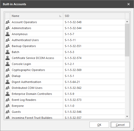For more information on creating rules for a Fencing policy, including adding Built-in accounts and Security Identifiers, see Rules Tab.