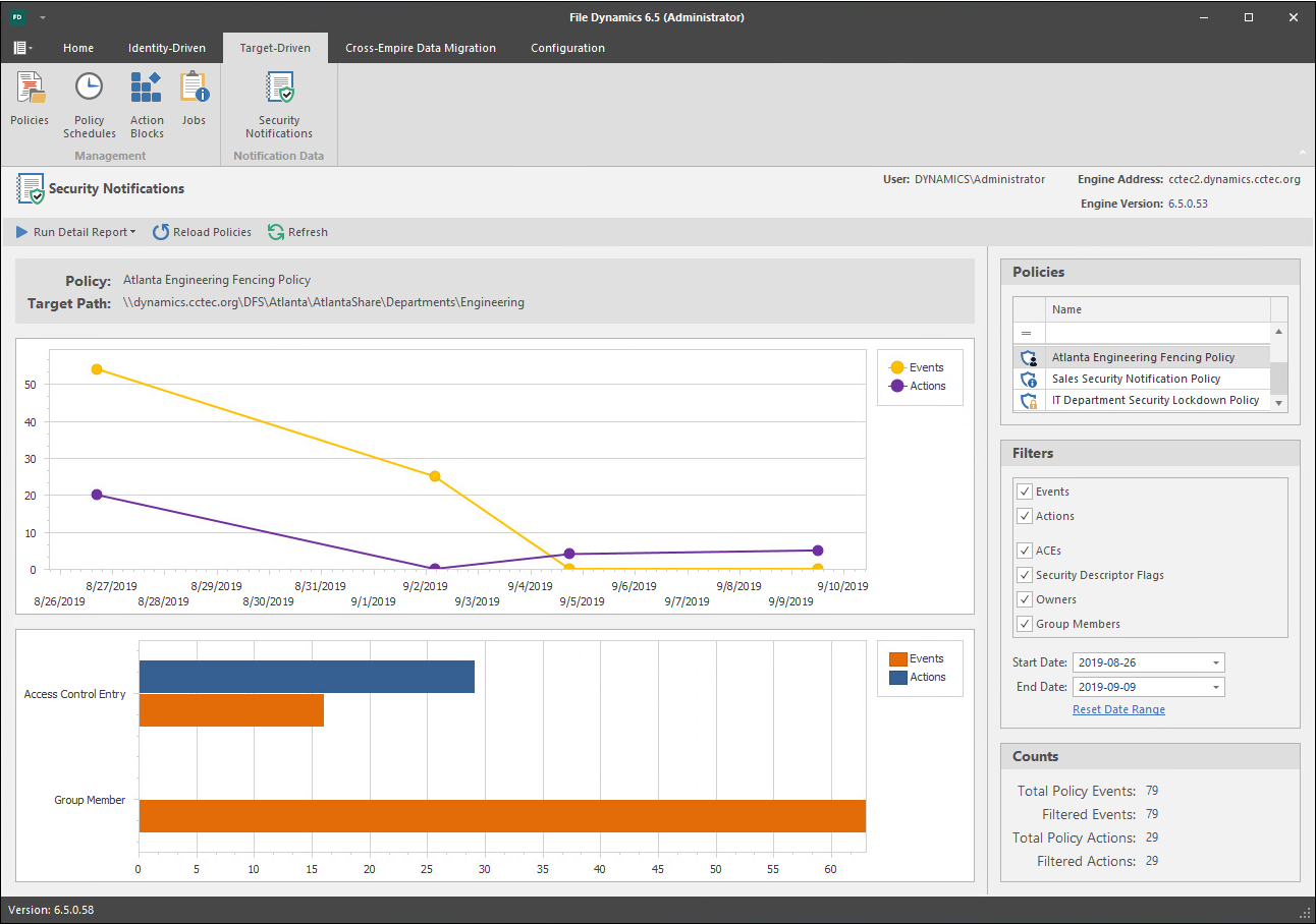 Viewing security notifications through the Security Notifications page is the means of determining changes in access permissions and group memberships for High-Value Targets managed through security policies and obtaining additional details through Detail Reports.