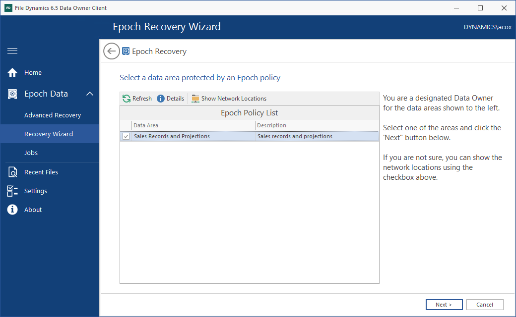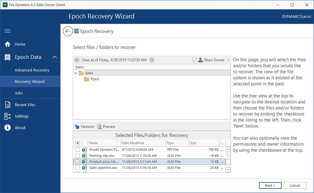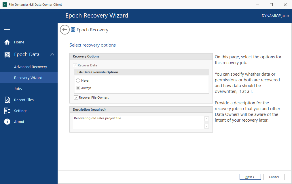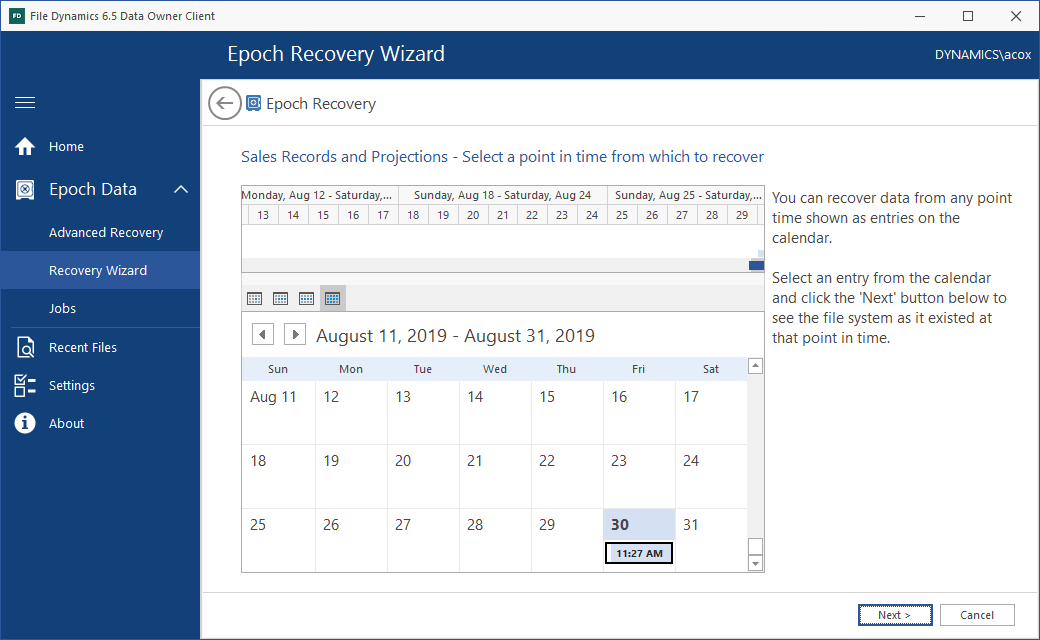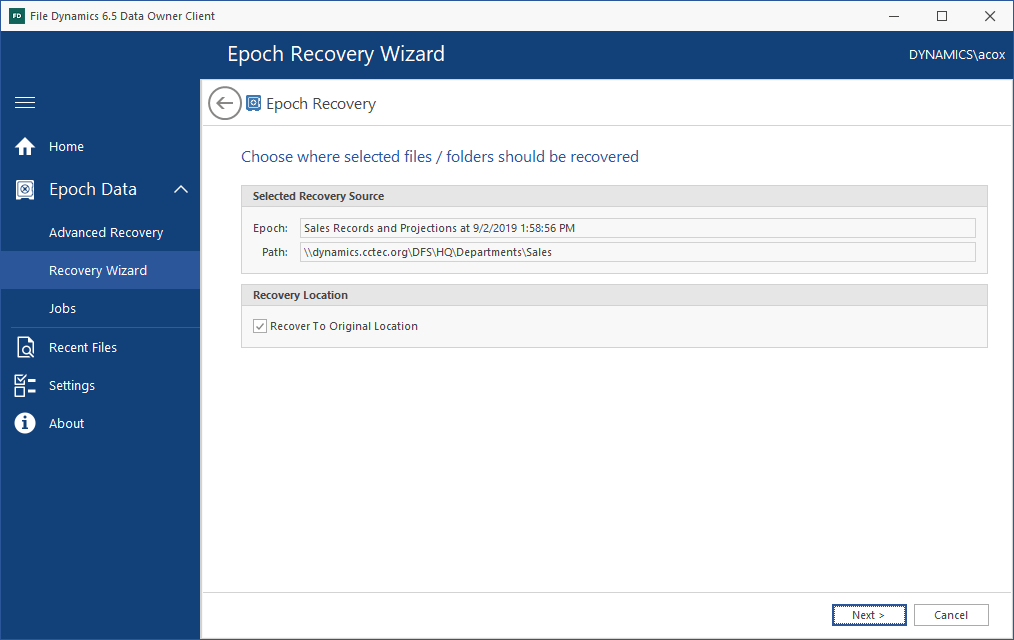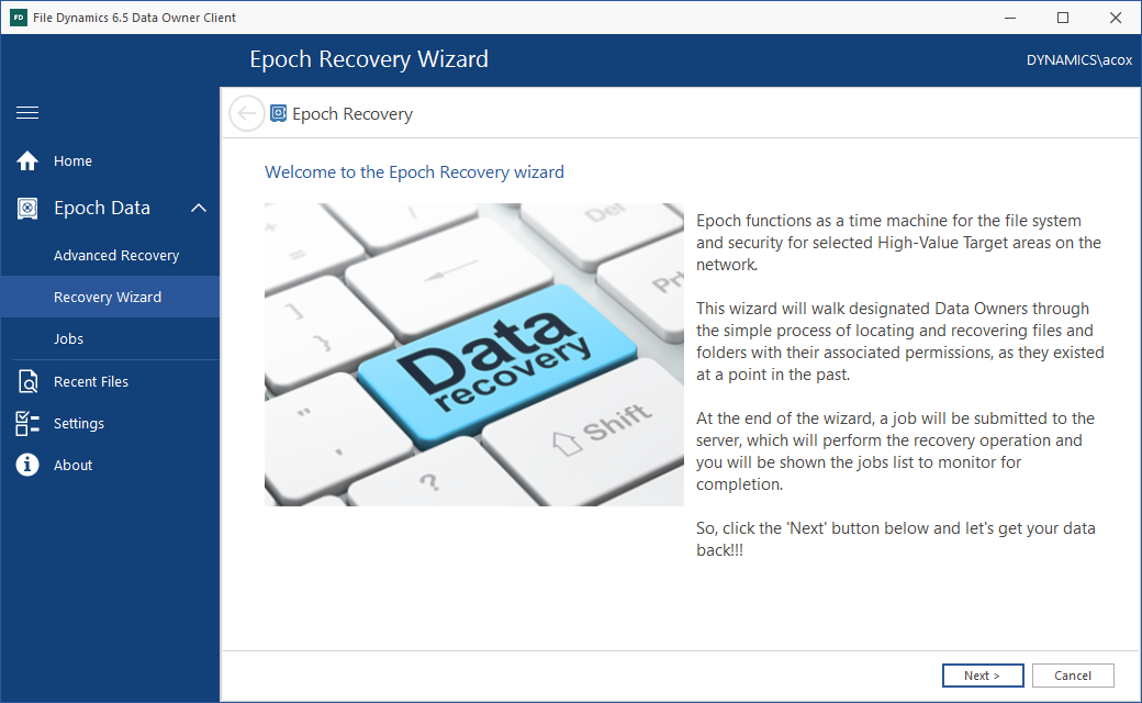 The Recovery Wizard allows you to recover data through step-by-step instructions provided in a wizard interface. For Data Owners that don’t recover data very often, this might be the fastest means of recovering data, due to the easy-to-follow interface.