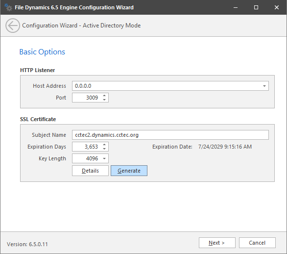 Expiration Days: The life span of the security certificate, which is set at 10 years by default.