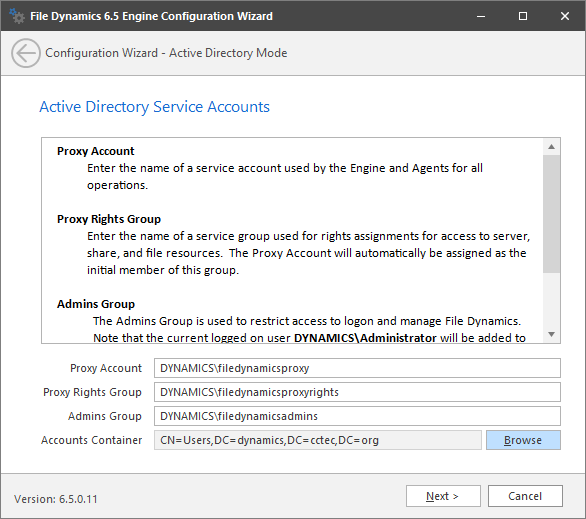 File Dynamics uses proxy accounts so that it can perform tasks necessary for storage management.