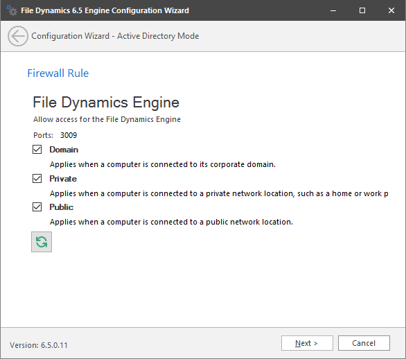 This page displays the current Windows firewall rules that pertain to the Engine. You can enable or disable these profiles as needed.