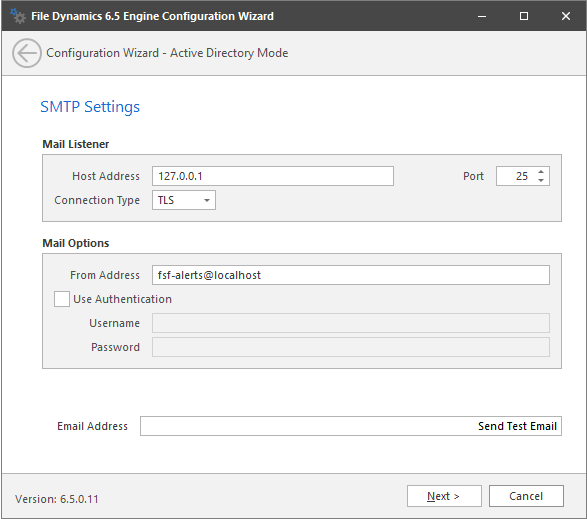 Use Authentication: In most cases, SMTP will require authentication. Selecting this check box activates the Username and Password fields where you can enter the credentials for authenticating to the SMTP server.