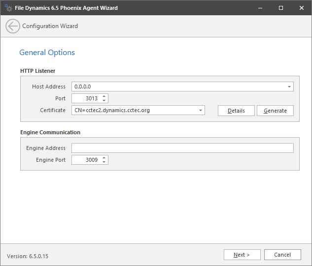 Engine Address: Specify the DNS name or IP address to the server hosting the Engine here.
