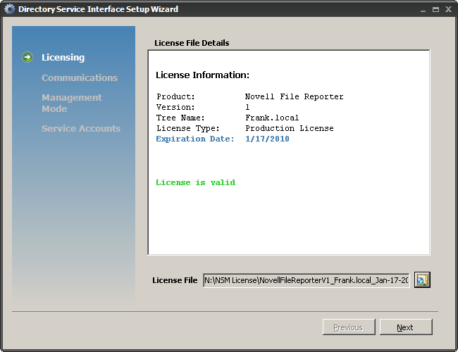 Click the folder button to browse to the location where you stored the license file in Step 7, select the license file, and click .