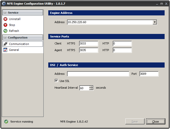 When you finish installing the NFR Engine, the NFR Engine Configuration Utility page appears.