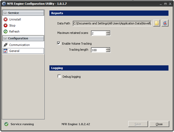 IMPORTANT:Even with the utility check box selected, the configuration utility does not automatically launch on servers running Windows Server 2008 R2. To launch the configuration utility in that environment, click Start > NFREngine-Config.