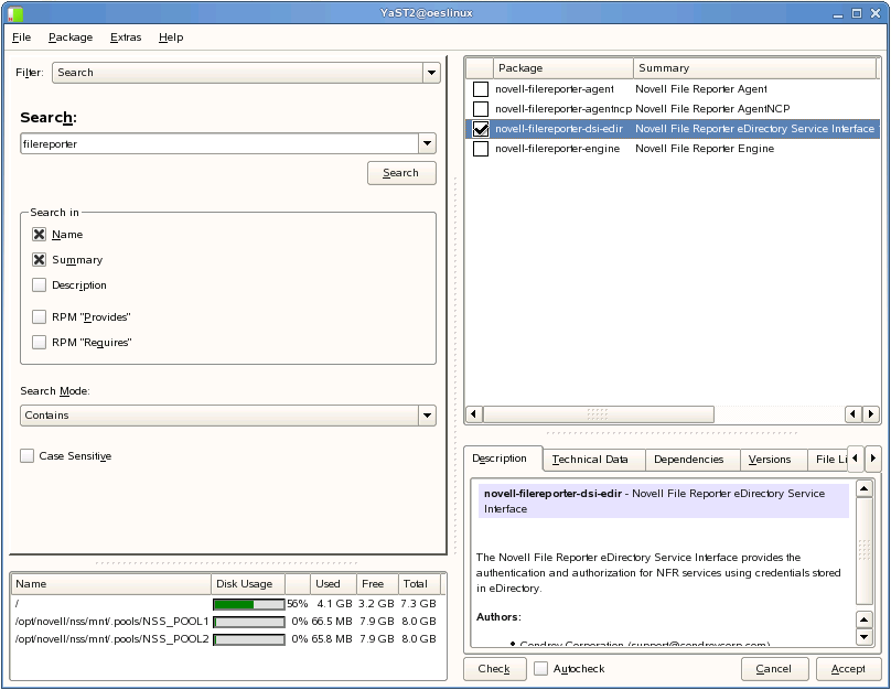 From the search results, select the check box for novell-filereporter-dsi-edir.