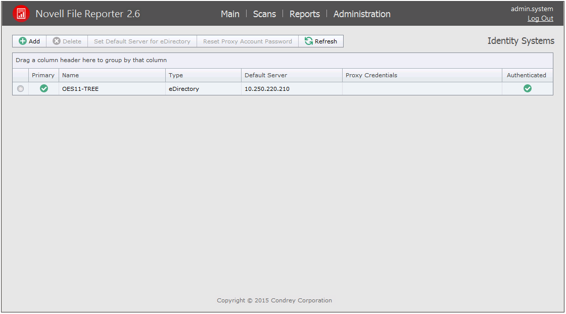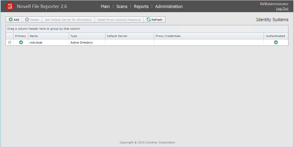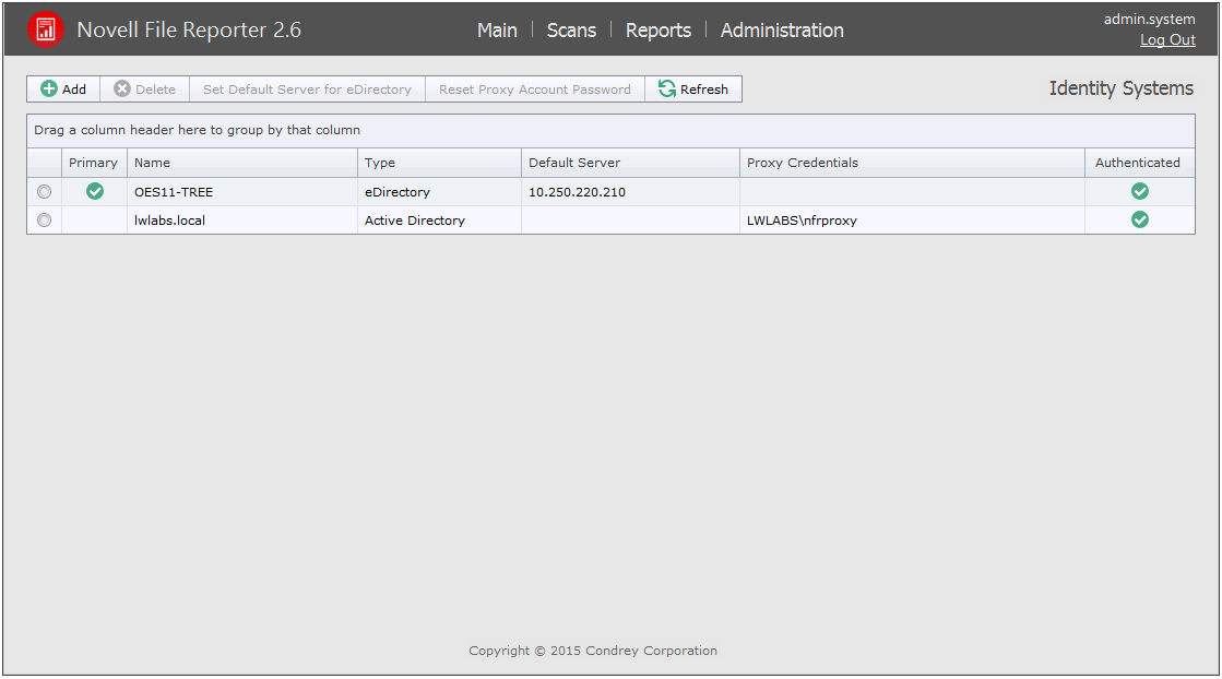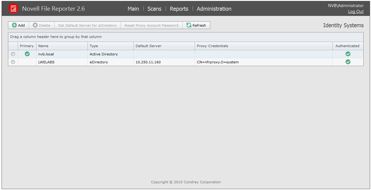 Novell File Reporter lets you enable other identity systems so that you can scan and report on the storage resources that are within those systems.