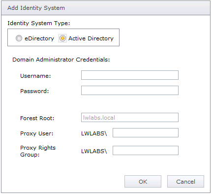 IMPORTANT:If your primary identity system is Active Directory and you want to enable eDirectory, you must first install the Novell Client on the Windows server that is hosting the NFR Engine.