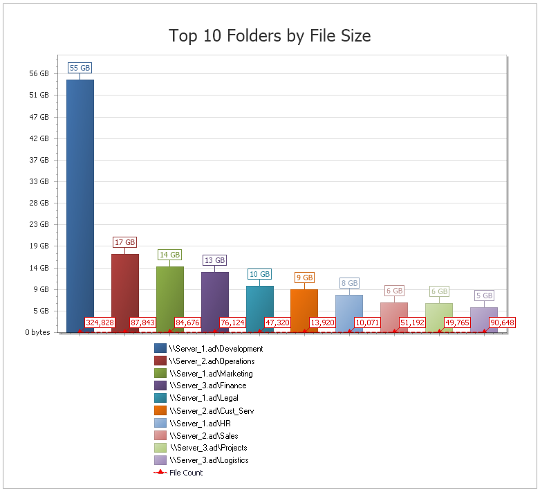 Novell File Reporter lets you present built-in reports in various formats including PDF, Microsoft Excel, RTF, HTML, TXT, and CSV. The product also includes built-in graphs for certain report types.