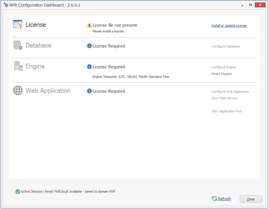 IMPORTANT:In order to successfully install the NFR Engine, you must be logged in as a domain administrator for the domain the computer is a member of. If you are not, the rights are not sufficient.