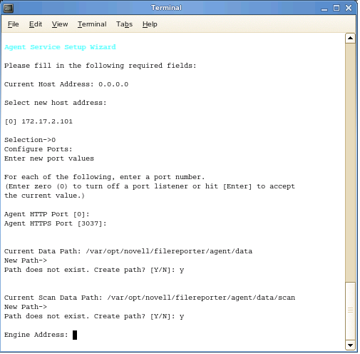 At the terminal console, install the RPM by typing the following command: rpm -Uvh novell-filereporter-agent-2.0.1-x.x86_64.rpm