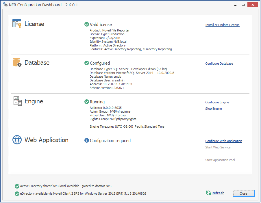 This page lets you confirm or change basic NFR Engine configuration settings.