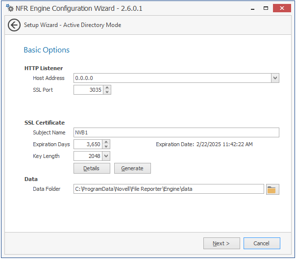 SSL Port: Unless there is a port conflict, leave the setting at 3035.