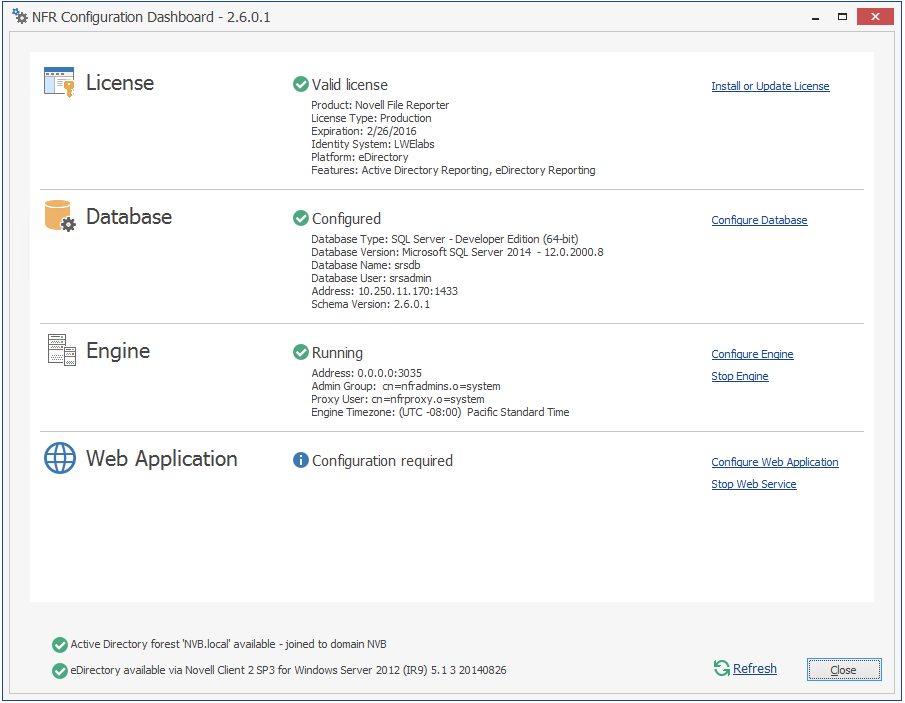 The NFR Engine is now installed, configured, and running.