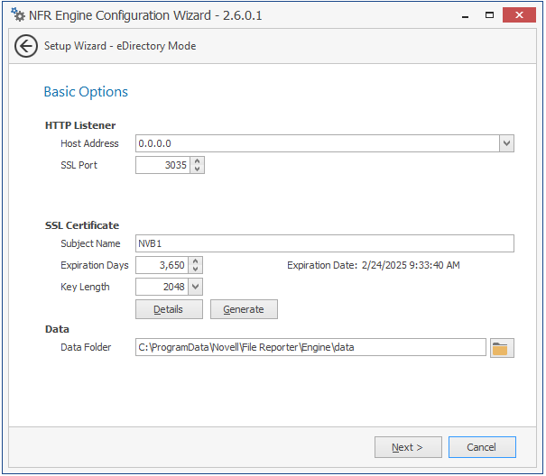 Host Address: Unless you want the NFR Engine to only listen on a certain IP address, leave this setting as it is.
