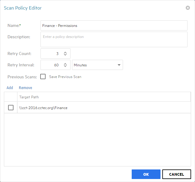 Click OK to save the scan policy and display the Scan Policy Editor dialog.