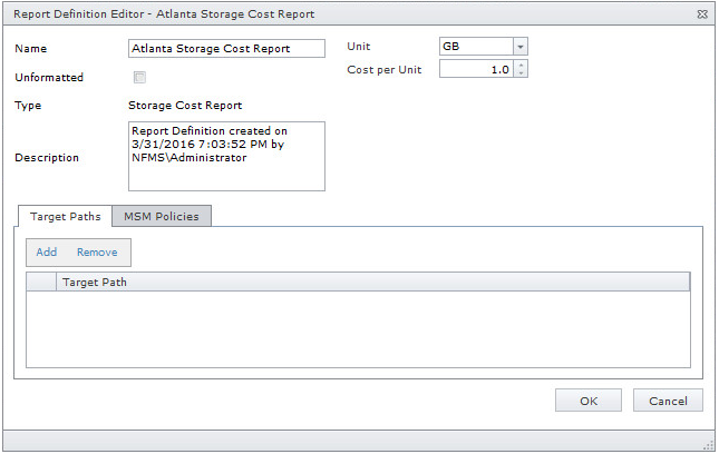 Storage Cost reports indicate storage costs according to prices established in the Cost per Unit setting of the Report Definition editor. You can use this report to determine which users or groups are being irresponsible with network storage practices.