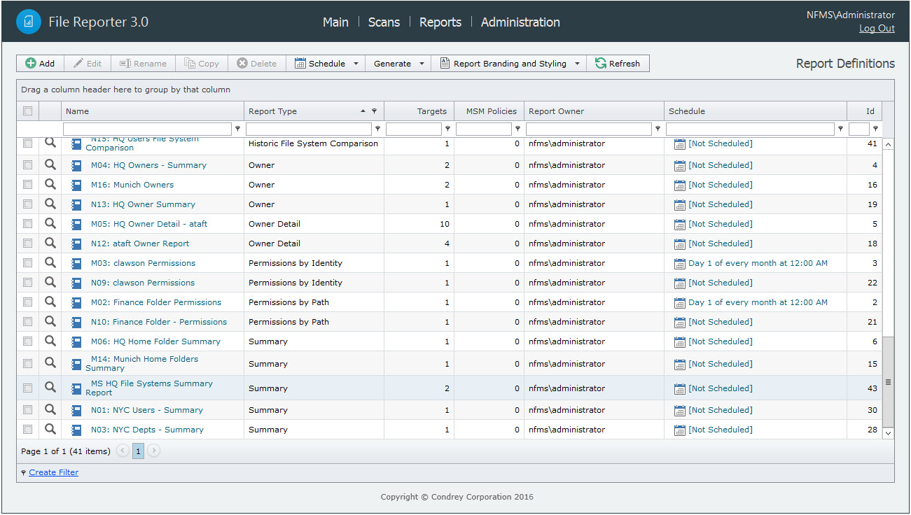 Before generating any type of Directory Data report, you must first conduct a File System scan on the volumes or shares you want to report on.