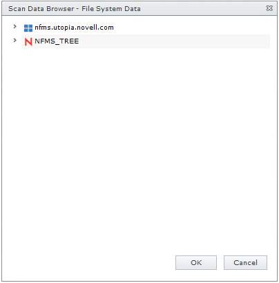 You must expand the eDirectory tree or Active Directory forest to be able to select the volumes or shares, even if you want to select the root of the eDirectory tree or Active Directory forest.
