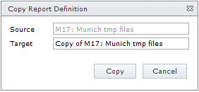 NOTE:Copying a report definition does not copy the content in the Description field, nor does it copy the report schedule.