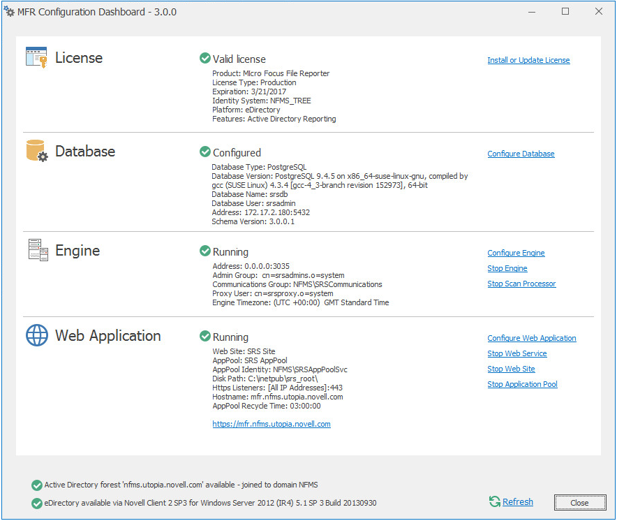 Application Pool: Settings pertaining to the File Reporter application pool in Microsoft IIS.
