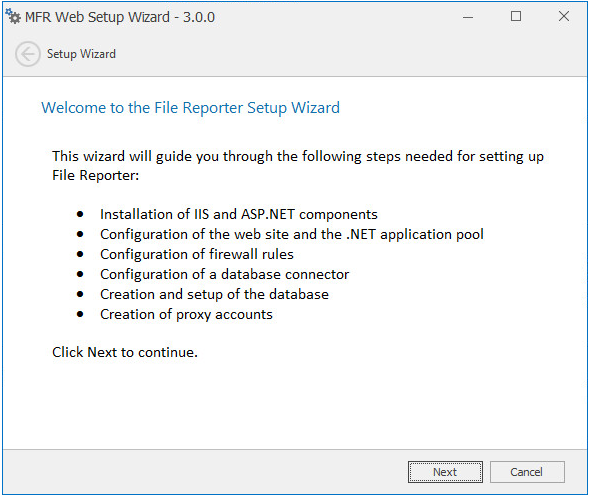 This page lets you install Microsoft IIS URL Rewrite Module 2.0, which will redirect the File Reporter login page from an entered HTTP protocol, to HTTPS. For example, if you enter http://mfr.nvb.local, you would be redirected to the secure login page at https://mfr.nvb.local.