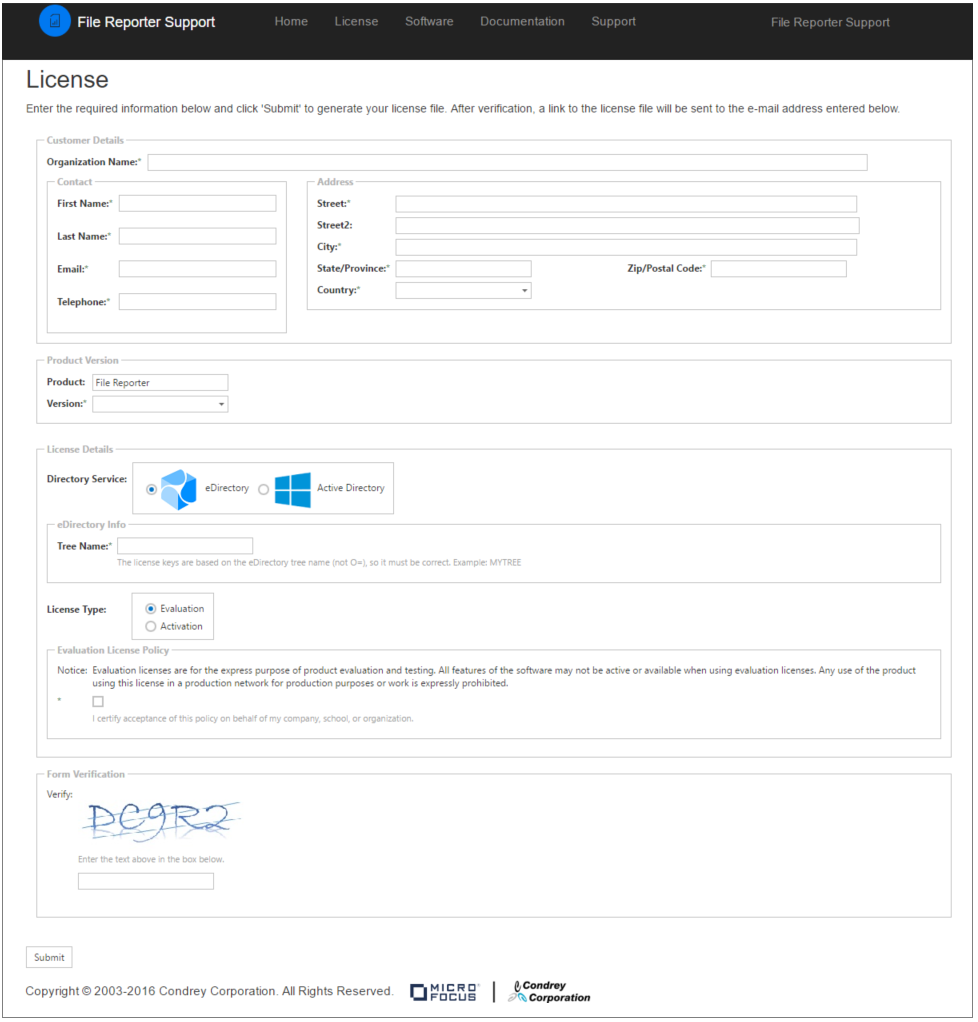 Micro Focus File Reporter requires a production license file or evaluation license file that you obtain from Micro Focus.