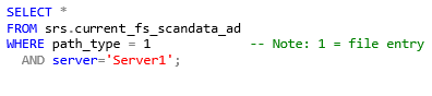 Scoping by a particular directory or folder requires the use of the hierarchical markers in the srs.scan_data table. These markers assist with determining parent and child folders as well as all subordinate file system entries for a given directory or set of directories.