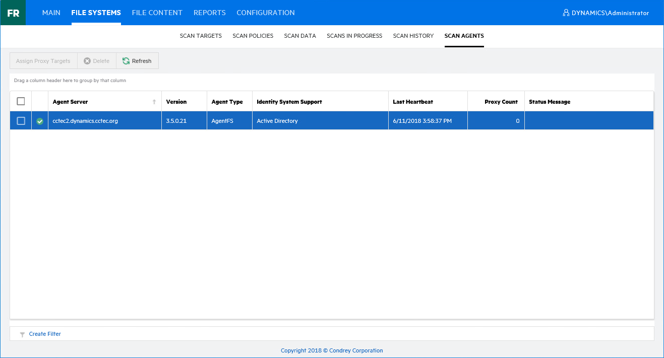 File Reporter does not include a NetWare Agent. Furthermore, an Agent cannot be deployed on a NAS device or server cluster. Additionally, only one Agent type (Legacy Agent, AgentFS, or AgentFC) can be hosted on a server. Finally, some organizations might not want Agents deployed on every server. In situations such as these, you can have a deployed Agent on another server function as a proxy agent.
