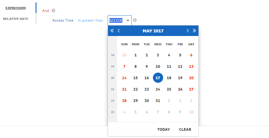 Using the settings in this procedure as an example, when you generate a report, the data would include only files that have been accessed after May 17, 2017.