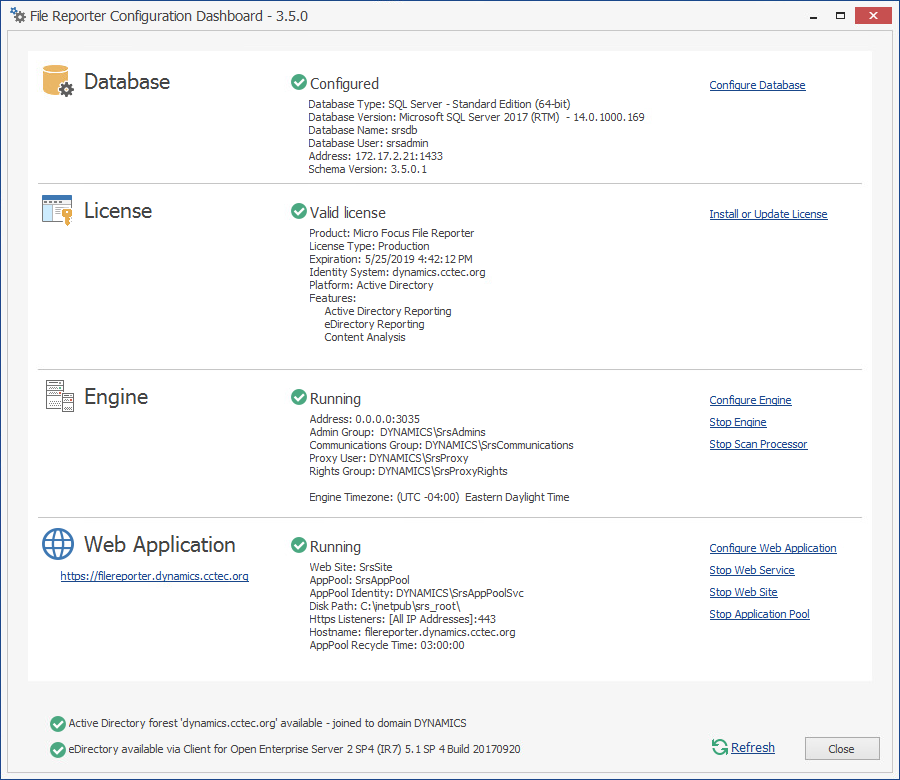 Use the Configuration Dashboard to stop and restart the Engine, Web Application, Web Service, Web Site, and Application Pool.