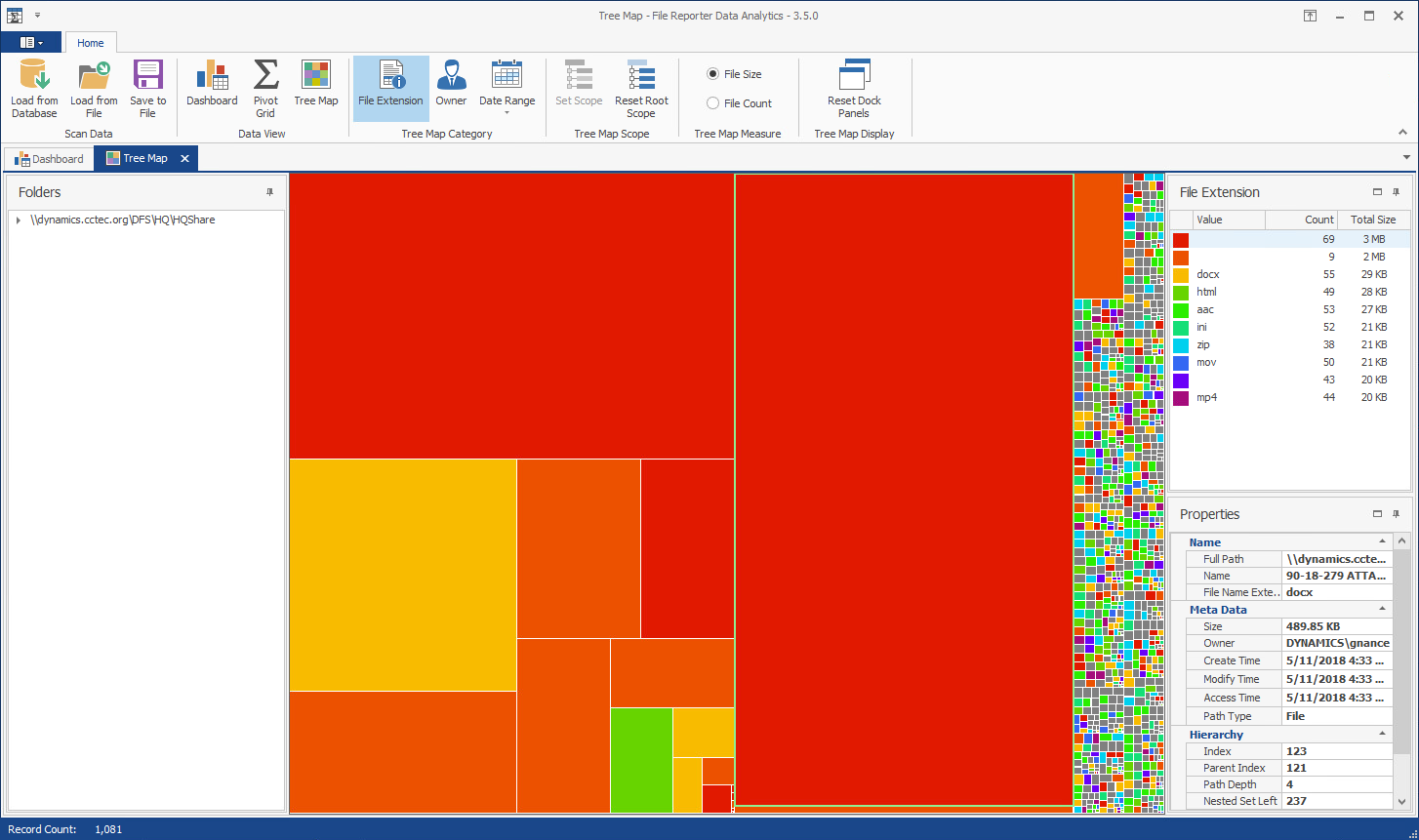 The Tree Map lets you view graphical representations of hierarchical file system data and in the process, gain insight very quickly.