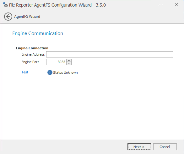 Engine Address: Specify the DNS name or IP address to the server hosting the Engine here.