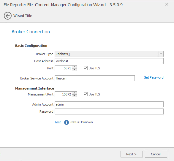 Use TLS: The RabbitMQ messaging broker in File Reporter utilizes Transport Layer Security (TLS) as the cryptographic communications security protocol.