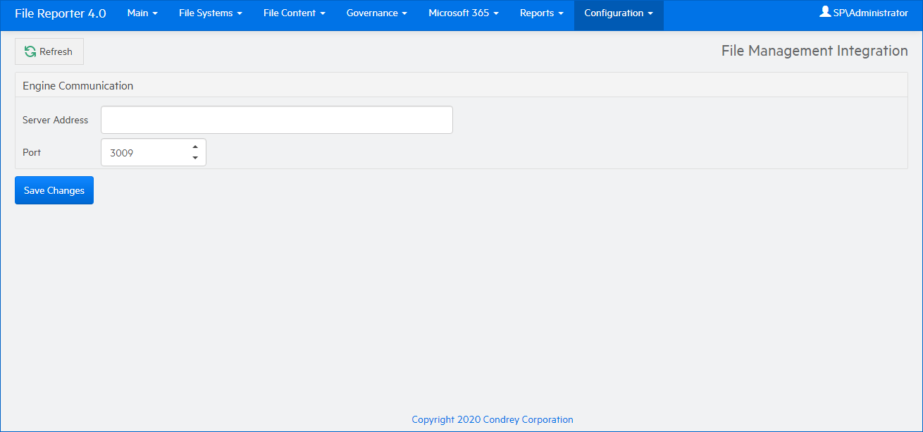 If you have Micro Focus File Dynamics deployed, you can use Micro Focus File Reporter to report on File Dynamics policies. Before you can do so, you must first specify the server address and port number of the server hosting the File Dynamics Engine.