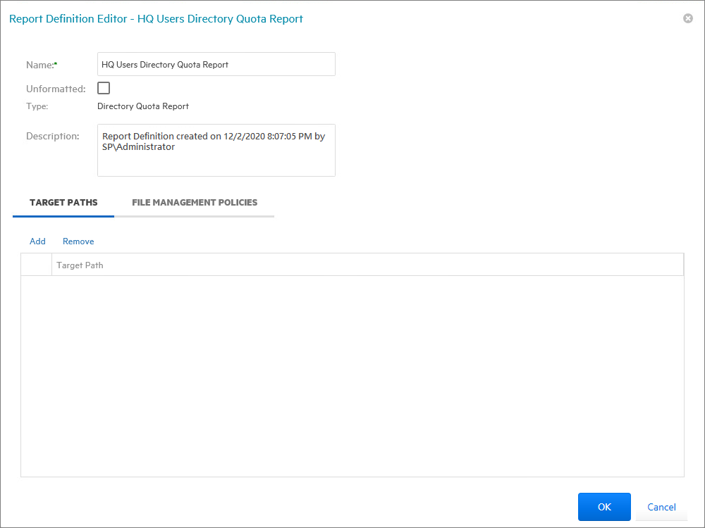 Click the > to browse to and select the file paths you want included in the report, then click OK.