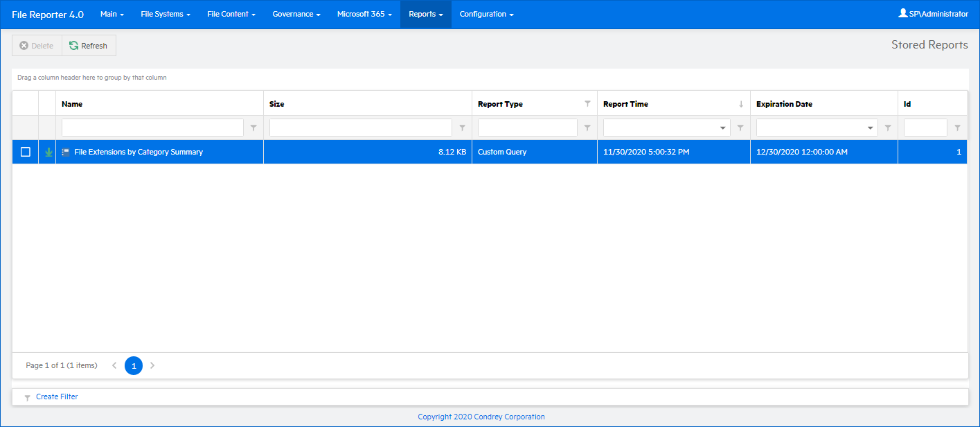 Generate the report in Stored mode by following the procedures under Generating a Stored Report.