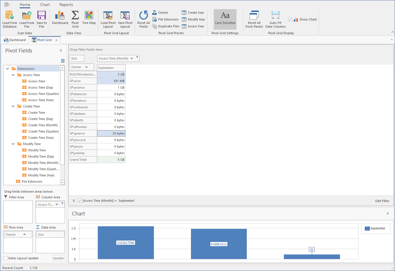 The Tree Map lets you view graphical representations of hierarchical file system data and in the process, gain insight very quickly.