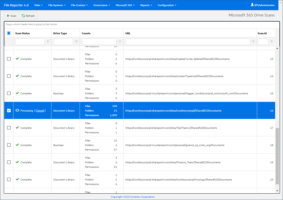 You can also monitor the progress of the scan among the various drives by selecting Microsoft 365 > Drives.