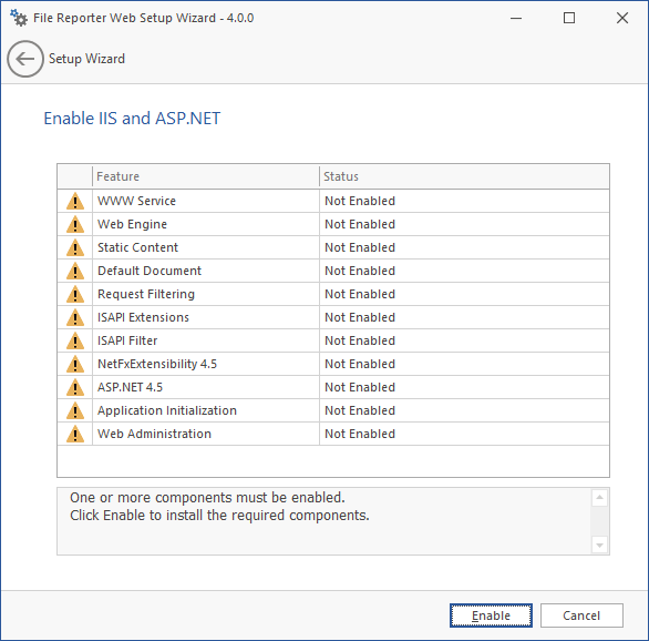 If a warning sign appears next to the Host Name entry, the host name is not fully resolved. Verify that there is a DNS entry for the File Reporter Web application and that the resolved IP address or addresses are located on the host machine.