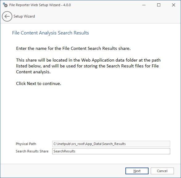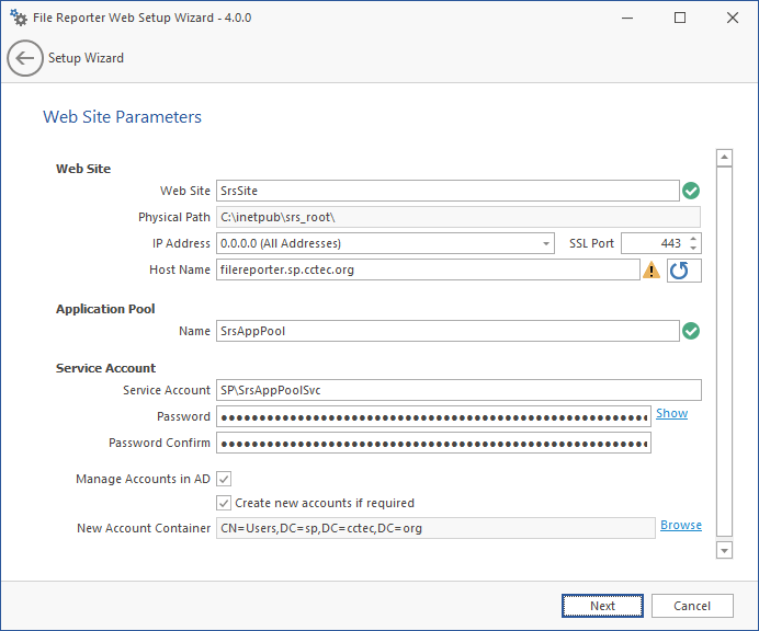 Web Site: The default name for the File Reporter Web site. If the default name does not conform to your organization’s naming standards, you can edit it.