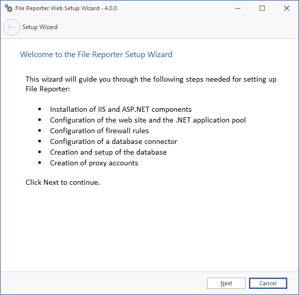 Application Pool: Settings pertaining to the File Reporter application pool in Microsoft IIS.